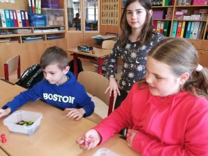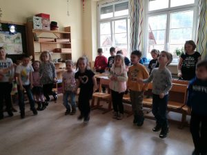 Gemeinsam starteten wir den Besuch mit einem fröhlichen Singen, bei dem sich die Kleinen und Großen gemeinsam aufwärmen konnten. Anschließend wurden die Vorschulkinder in Gruppen aufgeteilt und durften verschiedene Stationen in den Klassen 4a und 4b besuchen.