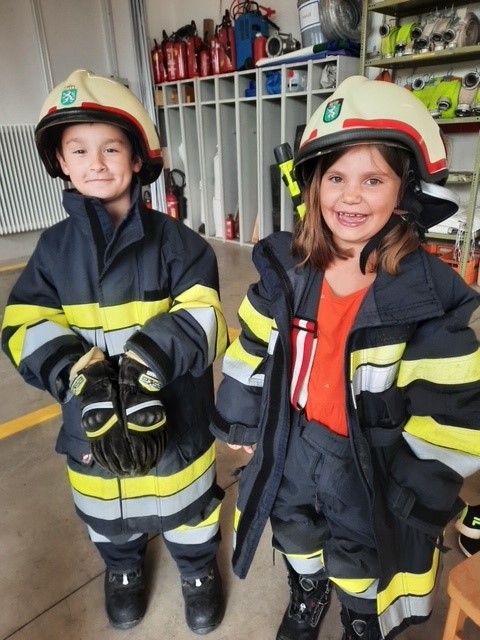 Der Ausflug begann mit einem Highlight, denn der Löschzug der FF Bad Schwanberg holte die Schüler*innen bei der Schule ab und sie wurden mit den Autos zum Feuerwehrhaus gebracht! Dort erklärten die Feuerwehrleute den Kindern, wie sie sich im Ernstfall richtig verhalten können und man einen Notruf tätigt. Danach wurde das Feuerwehrhaus besichtigt und alle Kinder durften eine Einsatzuniform – vom Stiefel bis zum Helm anziehen! Anschließend ließen sich die Kinder mit großem Interesse die technischen Geräte und Ausrüstungsgegenstände der Feuerwehrautos erklären. Höhepunkt des Besuchs waren die Spritzübungen, bei denen alle Mädchen und Buben mit viel Spaß mitmachten. Vielen Dank für den lehrreichen Besuch!