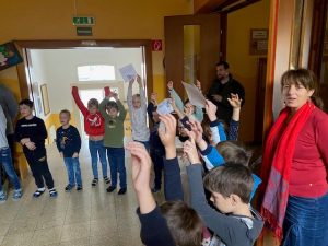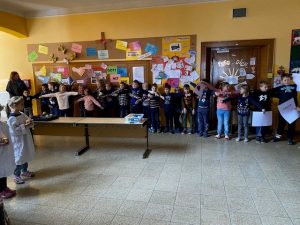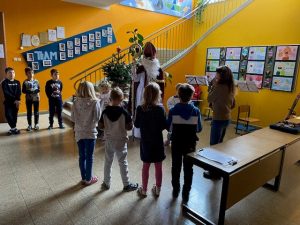 Anschließend besuchte der Nikolaus alle Klassen und übergab jedem Kind ein Nikolaussäckchen.