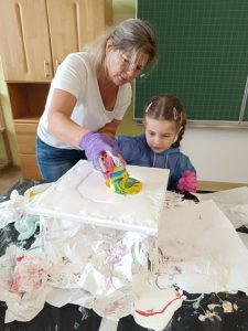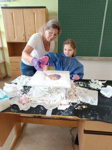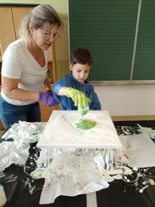 Am 26. November besuchte die Künstlerin Frau Stefica Kelemen die 1. Klasse der Volksschule Bad Schwanberg, um mit den Kindern einen kreativen Vormittag zu verbringen und ihnen eine besondere Maltechnik näherzubringen.